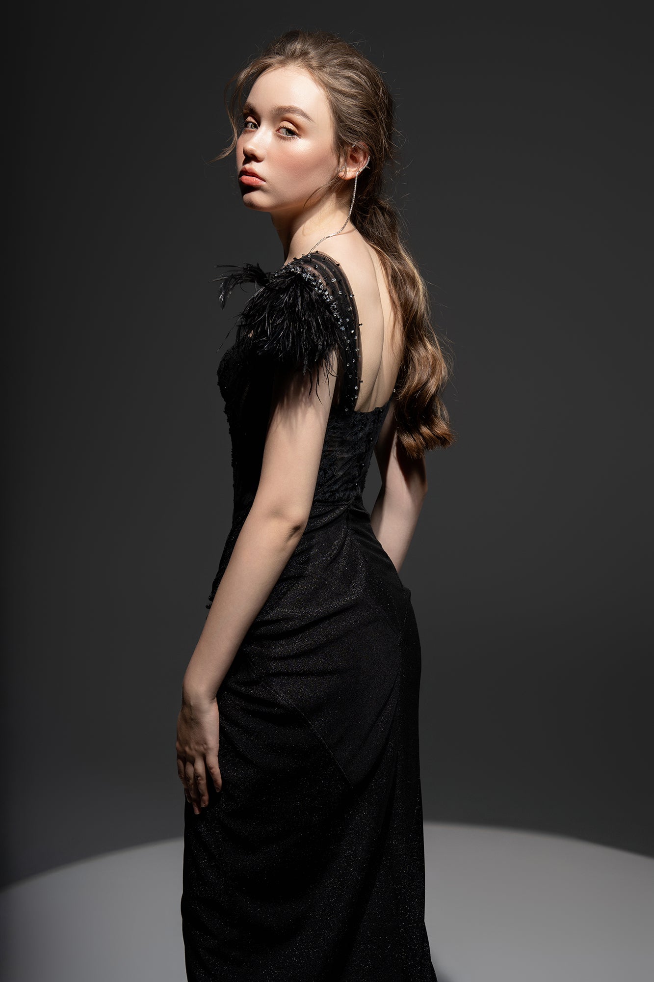This dress is a seamless blend of grace and allure, ideal for those who cherish elegance and craftsmanship. With its luxurious materials and thoughtful details, it’s a piece that celebrates femininity in its most captivating form.